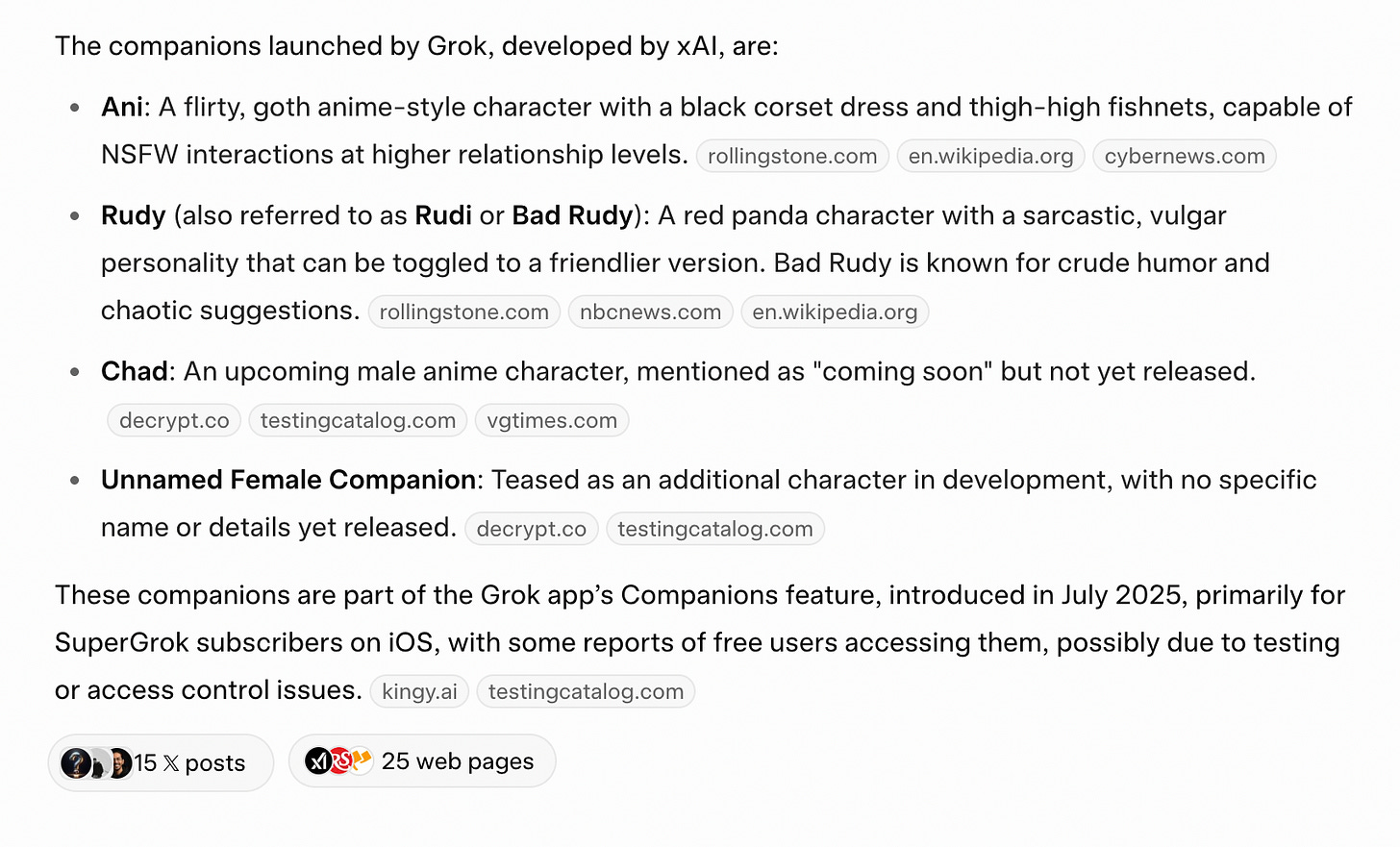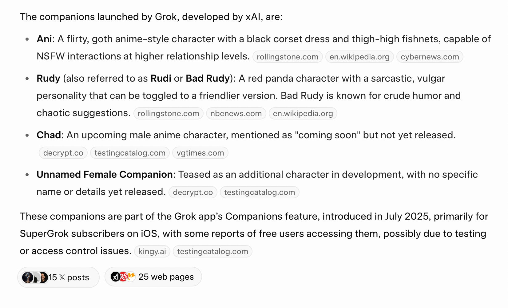 It’s a different route from Grok’s companions, where they opted for a variety of very distinct characters instead of a single character that can adapt to many situations. Each companion has a distinct personality and visual style.